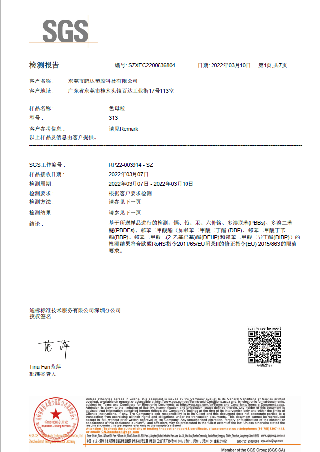 和鵬達(dá)塑膠科技有限公司合作很長一段時間了,他們的產(chǎn)品質(zhì)量好,服務(wù)到位,且原材料都通過SGS測試符合歐盟REACH,PaHS、ROHS及無鹵指令,備有美國FDA級食品接觸規(guī)格物料,和他們合作完全沒有后顧之憂!